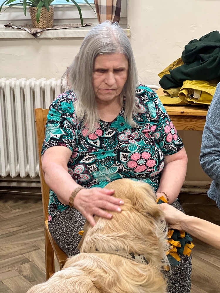 Klienti si užili nejen samotný kontakt se psem, ale zapojili se také do společných aktivit. Při schovávání pamlsků, které pejsek následně hledal, si procvičili jemnou motoriku, citlivost i spolupráci. Nechyběly úsměvy, pohlazení ani tiché chvíle vzájemné blízkosti.
