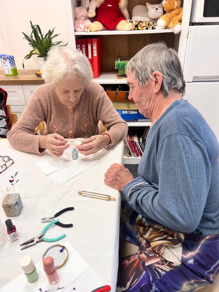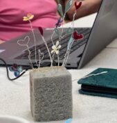 Ve čtvrteční dílničce 29. 1. jsme opět sáhli po laku na nehty. Tentokrát, ale s úplně jiným záměrem než lakovat nehty. Pomocí drátku a barevných laků jsme vyráběli jemné kytičky a srdíčka, která potěšila nejen oko, ale i duši.