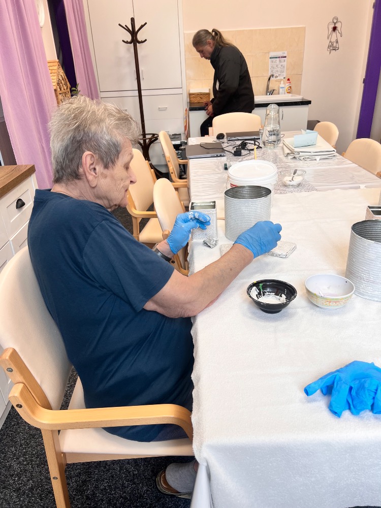 Ve čtvrtek 9. dubna jsme se pustili do natírání plechovek. Zatím jsme je oblékli do bílé barvy a necháváme se překvapit, jaké ubrousky je nakonec ozdobí.