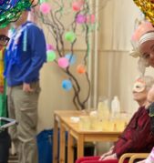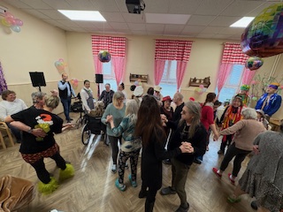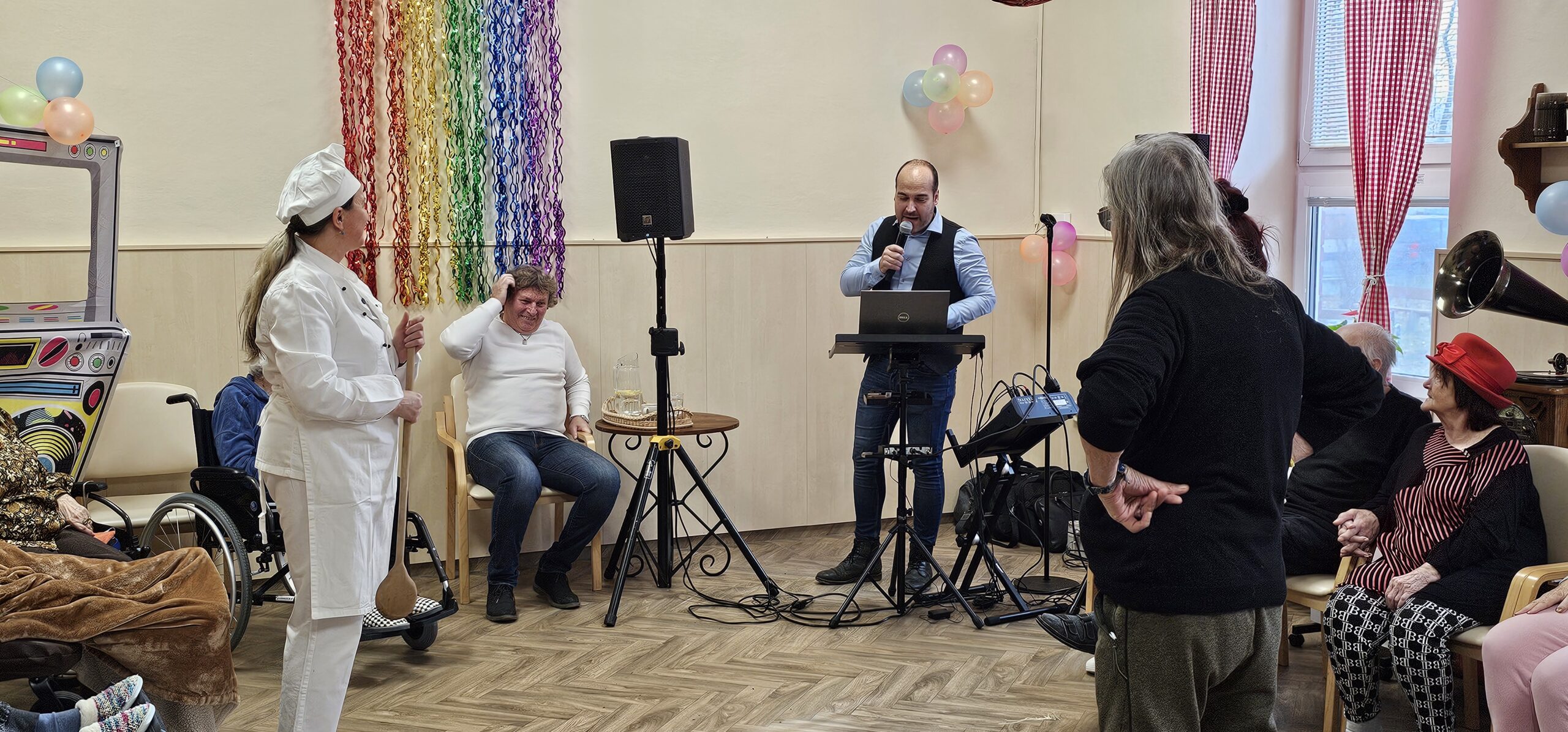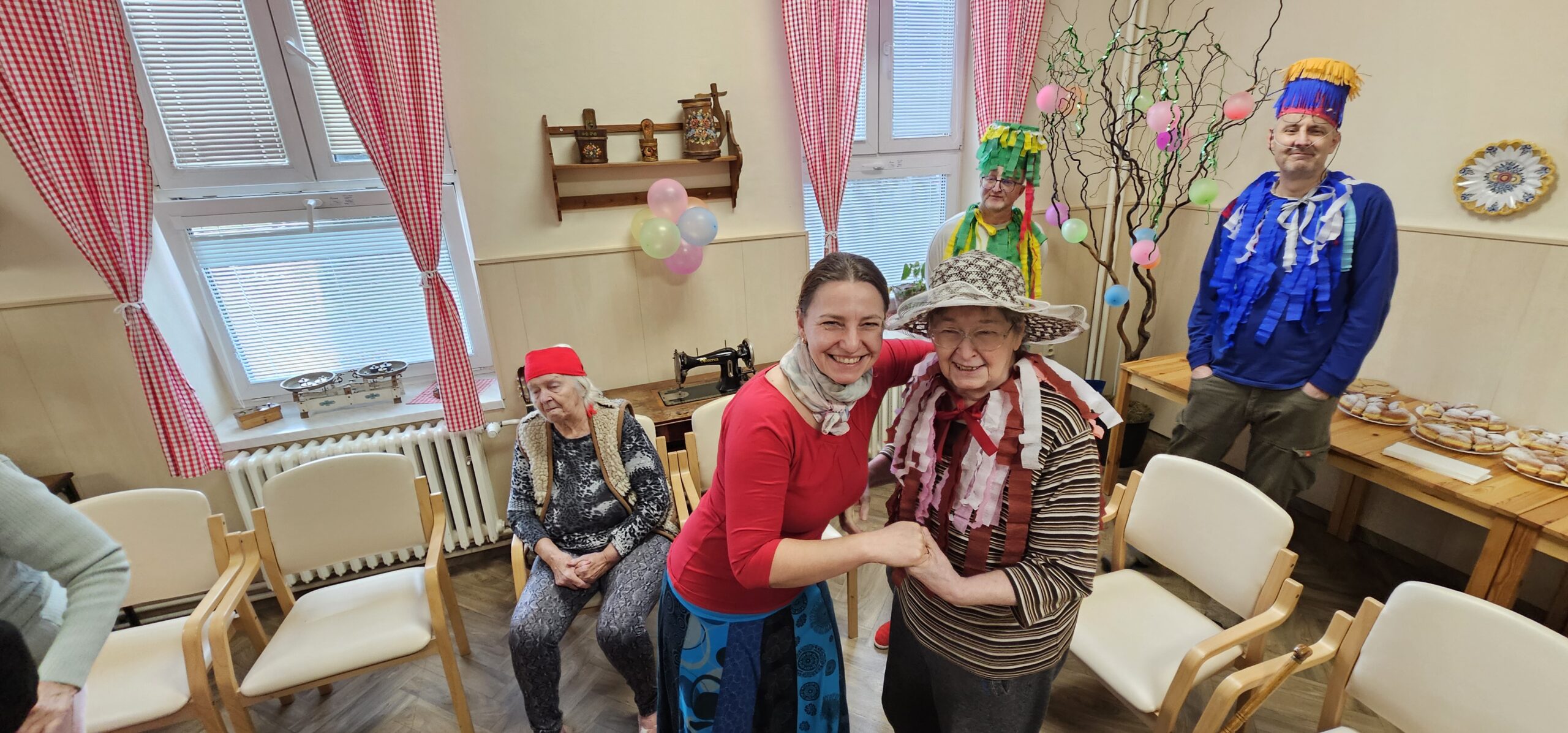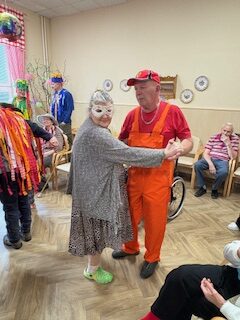 Ve 14 hodin se rozezněla hudba a kulturní místnost se proměnila v taneční parket plný barev, masek a radosti. K tanci i poslechu hrál pan Jakub Štýbar (DJ Stybi S.), který vytvořil skvělou atmosféru a dokázal roztančit nejen naše klienty, ale i personál.