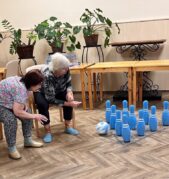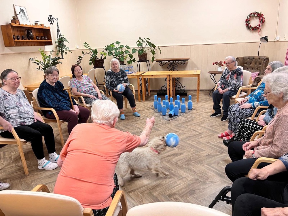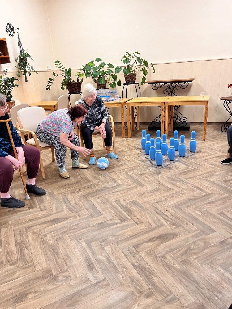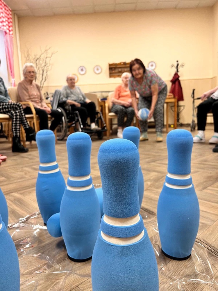 V pondělním cvičení jsme si nejprve krásně protáhli celé tělo, pořádně se srovnali a pak už hurá na tiché kuželky. Do hry se zapojila i Fifinka, takže si dovedete představit, že to občas neměla vůbec jednoduché. Smích a dobrá nálada nás provázely po celou dobu a opravdu jsme se u toho všichni neuvěřitelně bavili.