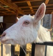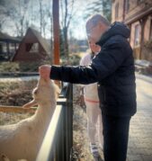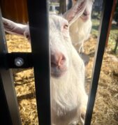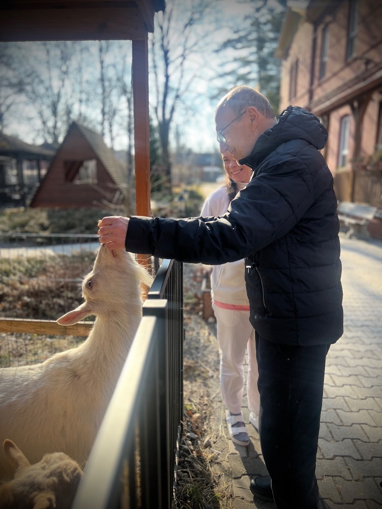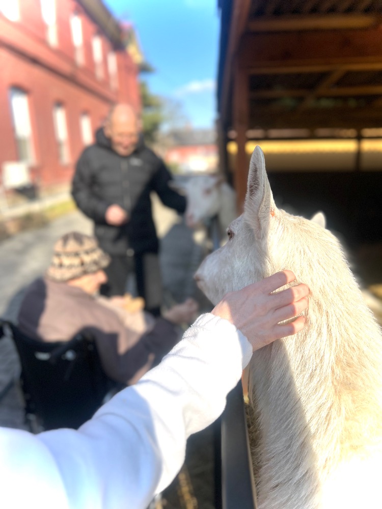 A když už jsme byli venku, nemohli jsme minout ty nejzvědavější obyvatele našeho domova, naše kozy. Hned jak nás uviděly, přiběhly k ohradě a jedna přes druhou se tlačily, aby si také vysloužily pohlazení. Byla to opravdu veselá podívaná.