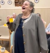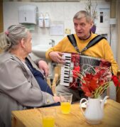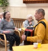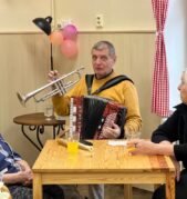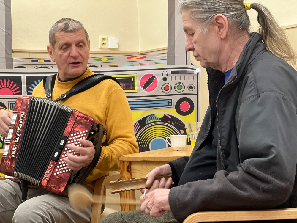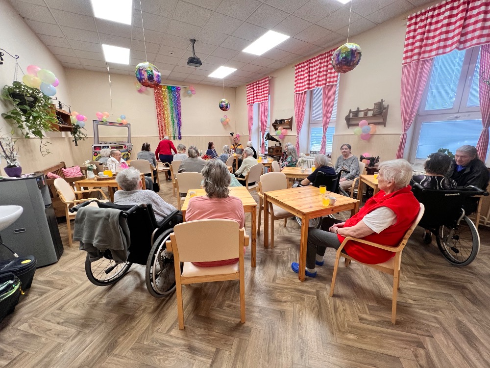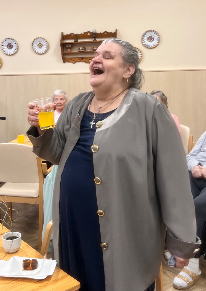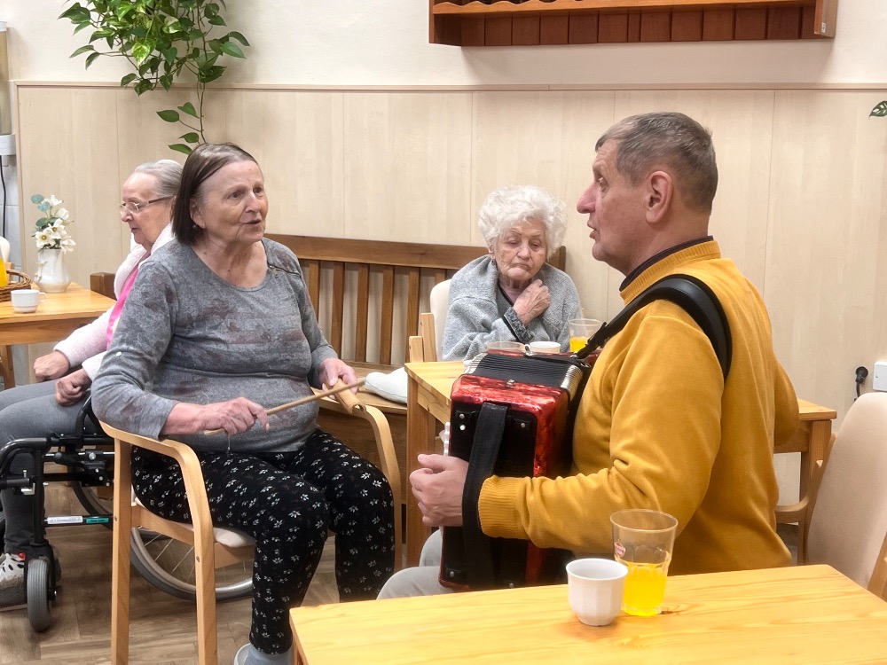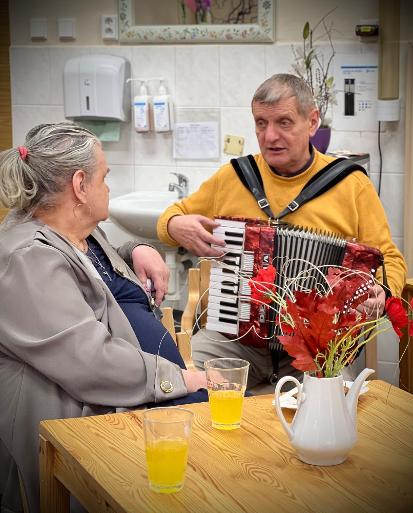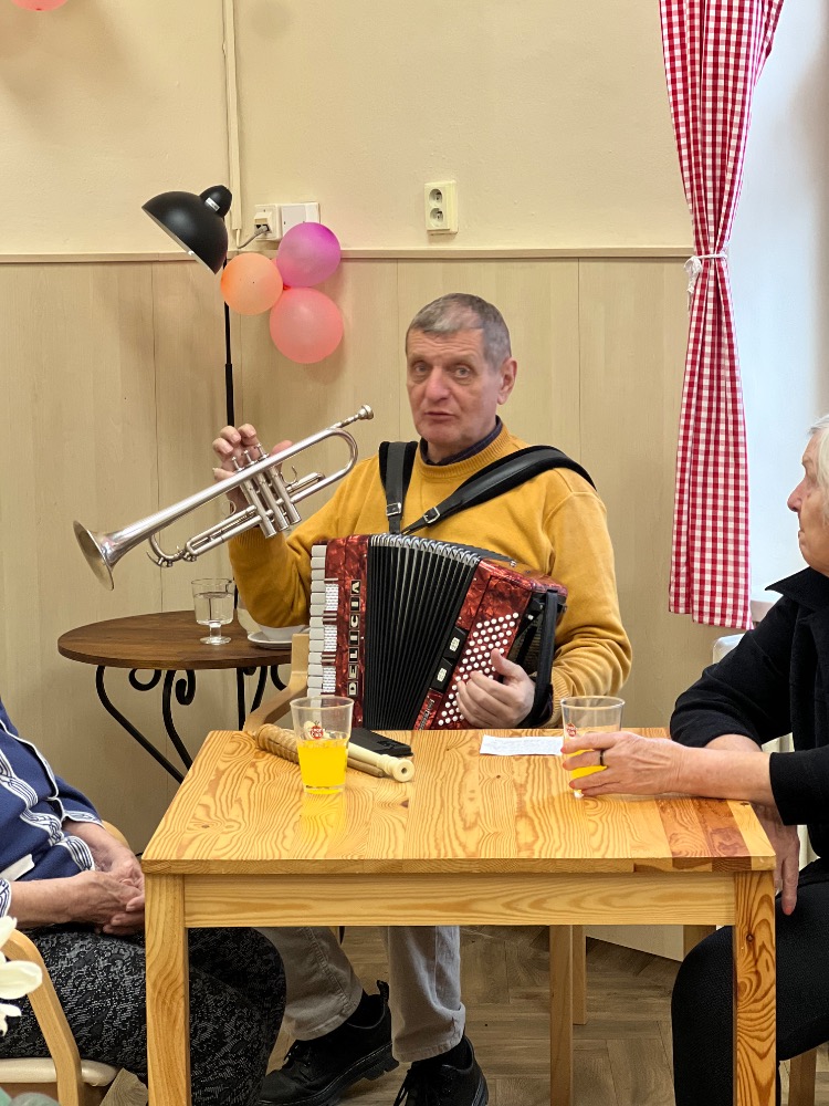 Ani u nás tento svátek nezůstal bez povšimnutí. Dopoledne jsme si zpříjemnili dobrou kávičkou, milým posezením a především hudbou, která k oslavám patří. O hudební doprovod se postaral pan Švidrnoch se svou harmonikou. Známé melodie rozezvučely celou místnost a brzy se přidaly i hlasy našich klientů. Zpívalo se, usmívalo i lehce pohupovalo do rytmu. Nezapomnělo se ani na paní Lenku, která tento den slavila své životní jubileum. Celá oslava byla naplánovaná na odpoledne, ale mi jsme ji rádi připravili malé překvapení.