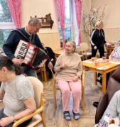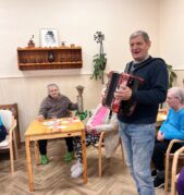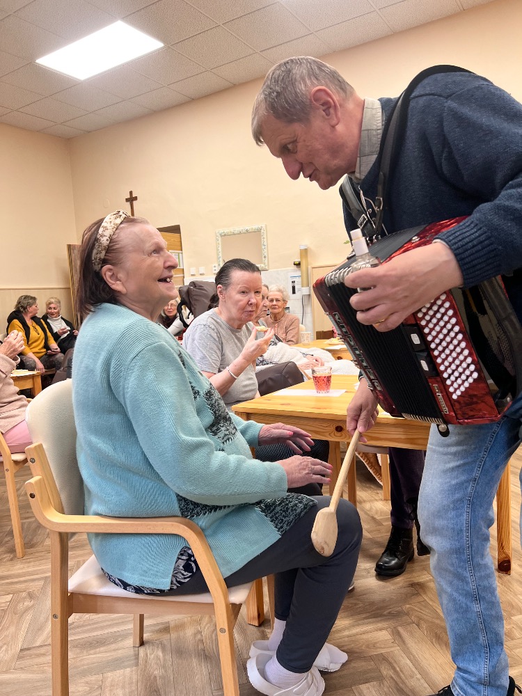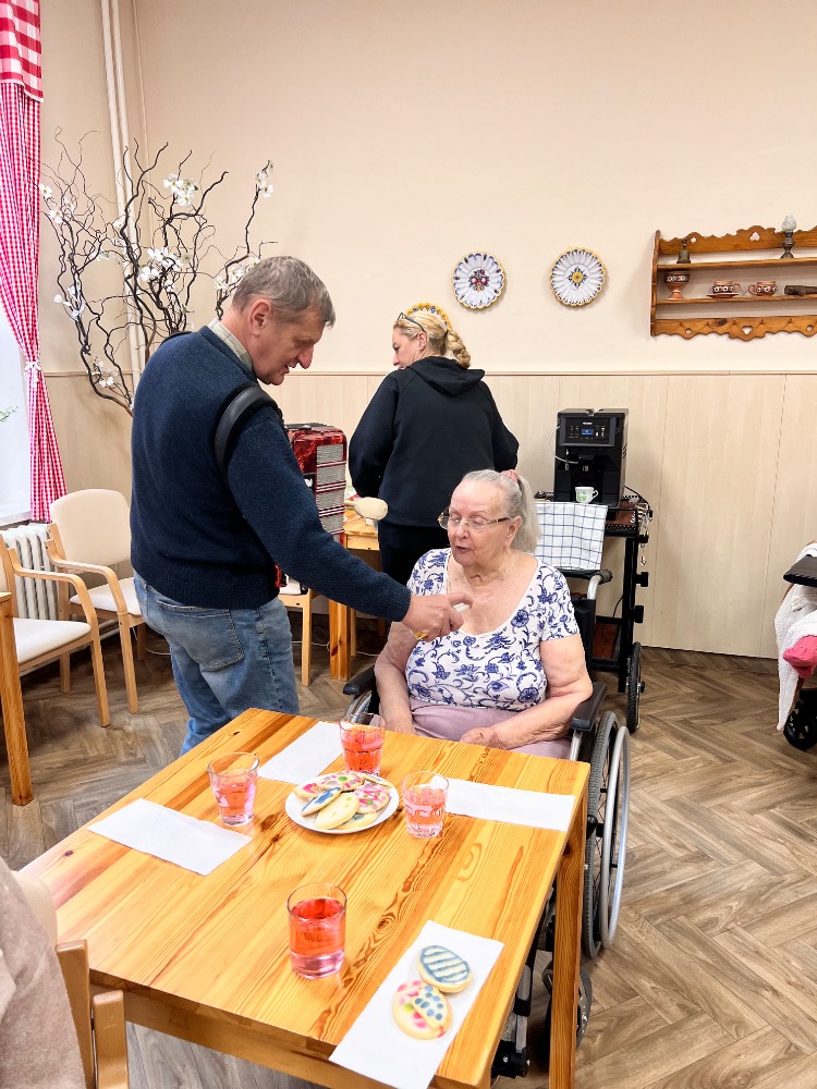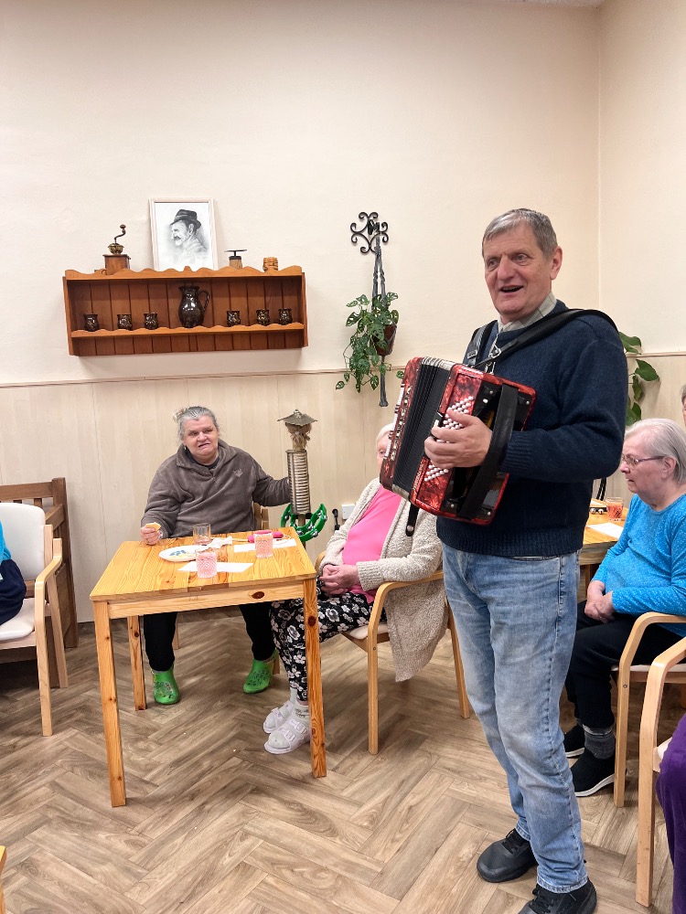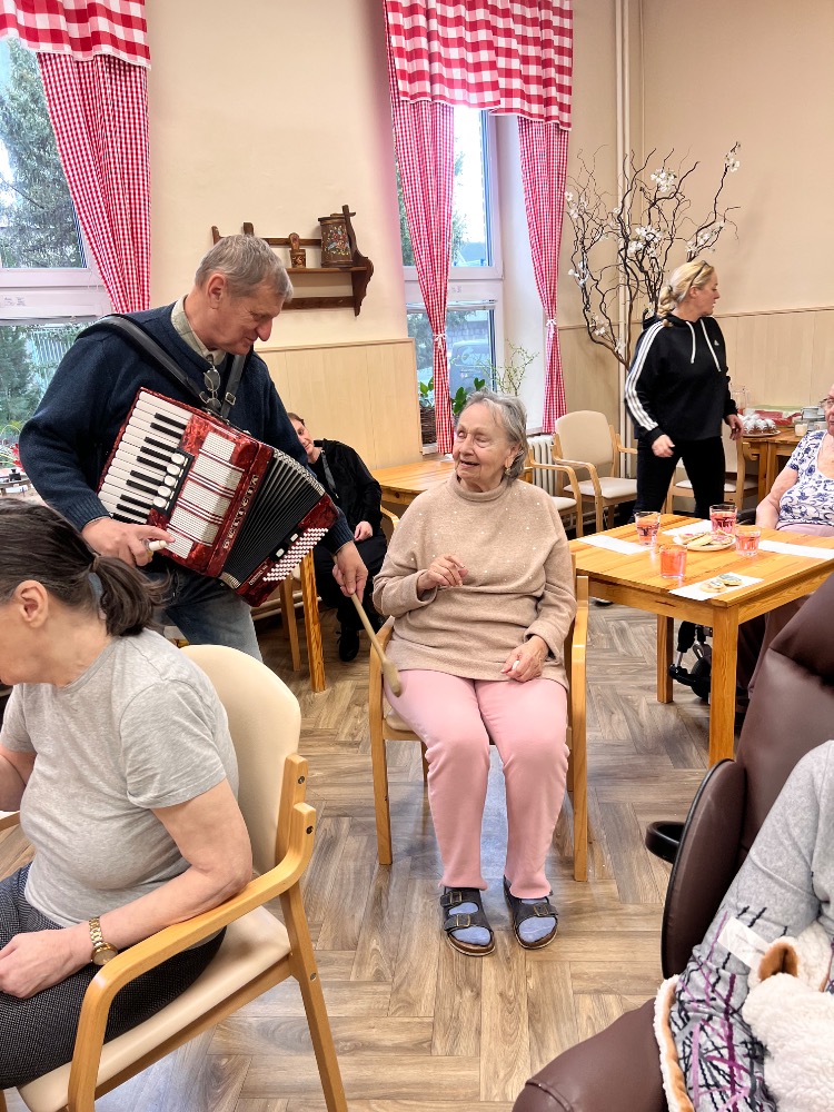 O hudební doprovod se postaral pan harmonikář Švidrnoch, díky němuž jsme si společně zazpívali známé písně a užili si chvíle plné radosti a dobré nálady. Nechyběl ani jeho typický humor – mnohé z nás „v předstihu vyplatil“, a tak jsme se s úsměvem shodli, že „vlastně neuschneme“.